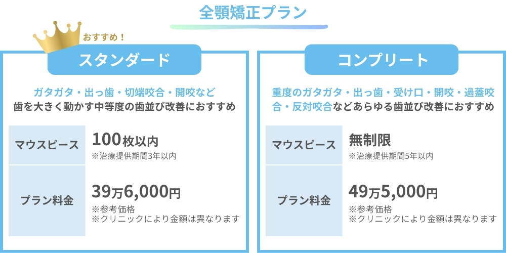 ※症状により、拡大床・IPR・アタッチメント・抜歯などの追加治療を歯科医師から推奨される場合があります。