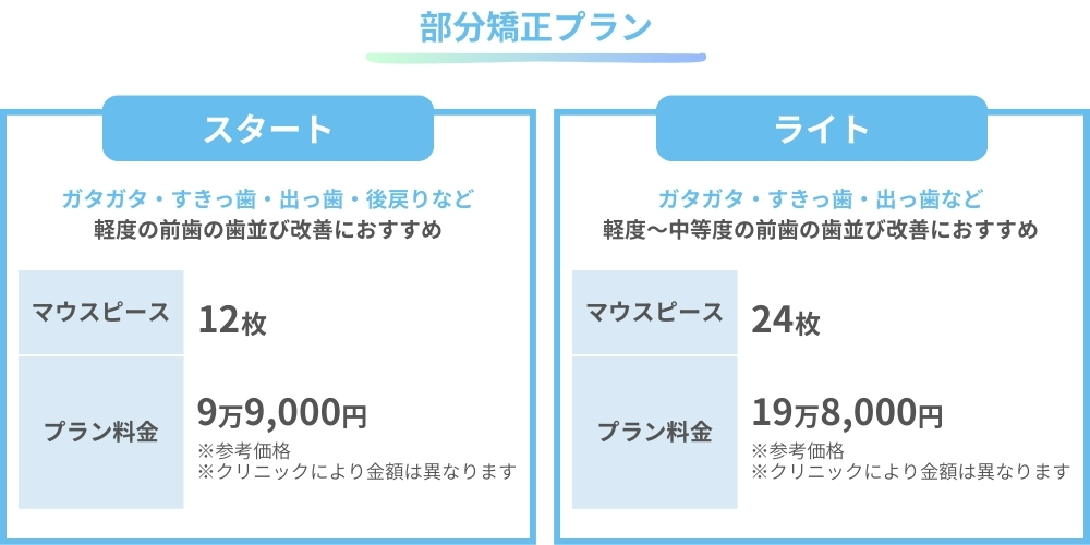 歯並びの状態に合わせて選べる4つのコースがあります。