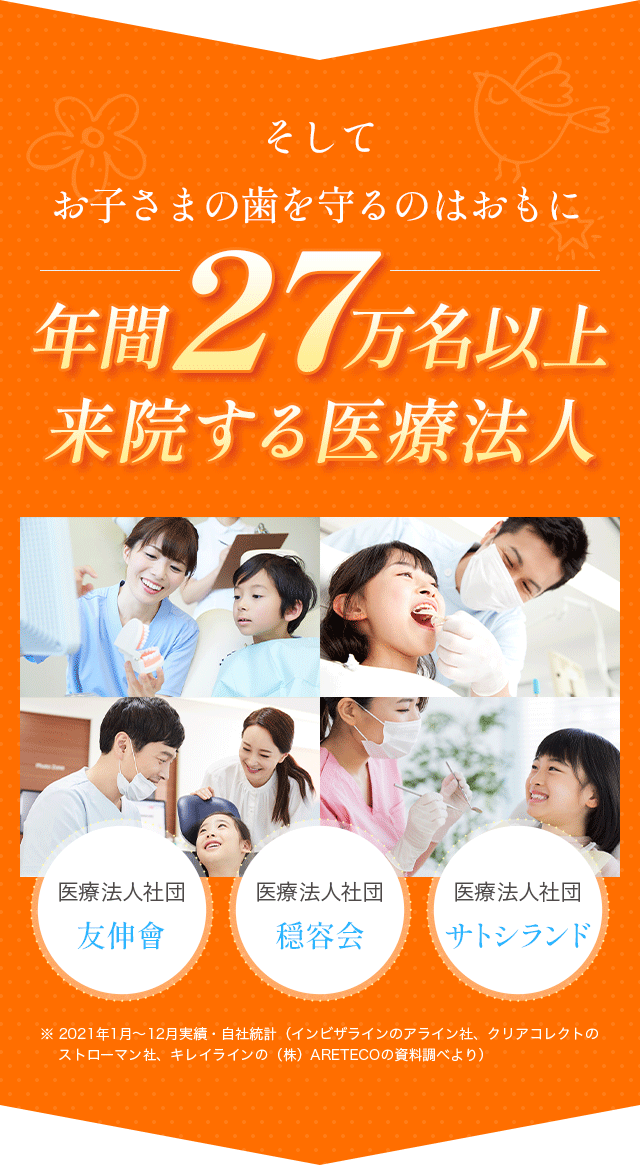 キレイラインKIDSの推奨年齢は3歳~12歳※です。 近い年齢で初回検診の受診を強く希望される場合は、予約フォーム内【その他・ご要望等】に記入のうえ、提携クリニックへご相談ください。