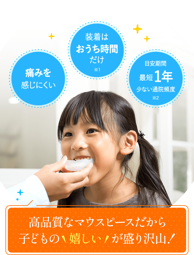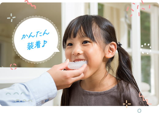 歯に直接力を加えて動かす治療とは違い、痛みを感じにくいため、お子さまが続けやすいです!