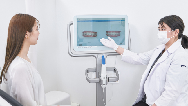 診査結果をもとに、歯科医師が何回の治療で、どの程度の歯並びになる見込みかなど、治療プランを丁寧に説明します。クリニックによっては歯並びの変化のシミュレーションもできます。