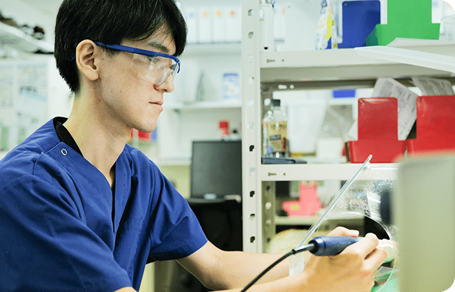 一方キレイライン矯正では、『歯科技工士という日本の国家資格を持つ人』だけがマウスピースをデザイン。質の高いマウスピースを製造しているの。