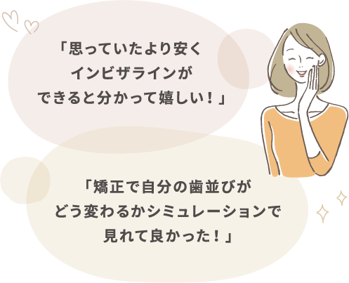 検診費用は一切かかりませんので、ご安心ください。もっと多くの方にご自分にぴったりの矯正治療法を見つけていただきたい、との想いから無料で実施しております。
