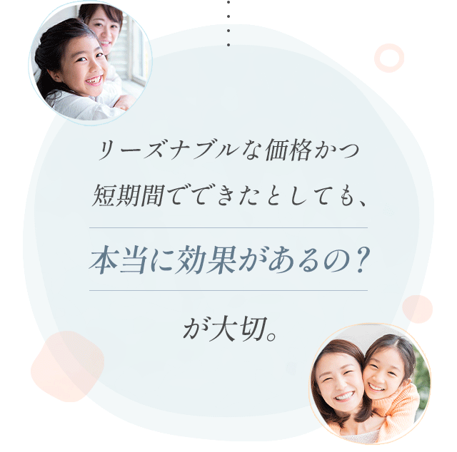 おうちにいる時間だけでも可能なプログラムなので、目立つ矯正装置を外でつけたくないという多感な時期のお子さまでも、チャレンジしやすいです!