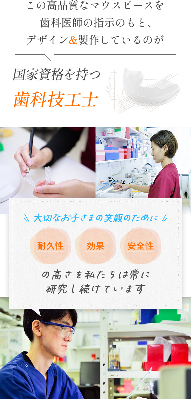 小児用マウスピースは、海外製品が多く、日本人の歯列に合わない問題が。