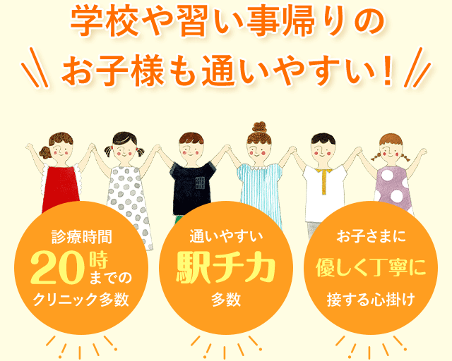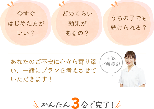 • ※推奨年齢は3歳~12歳(初診時年齢3~11歳)です。近い年齢で初回検診の受診を強く希望される場合は、予約フォーム内【その他·ご希望望等】に記入のうえ、提携クリニックとご相談ください。