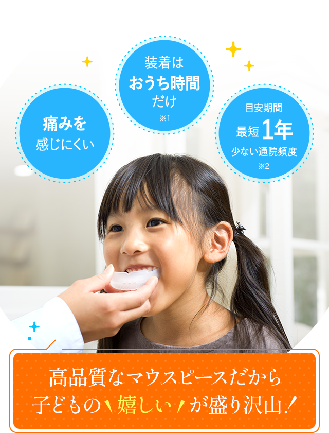 歯に直接力を加えて動かす治療とは違い、痛みを感じにくいため、お子さまが続けやすいです!