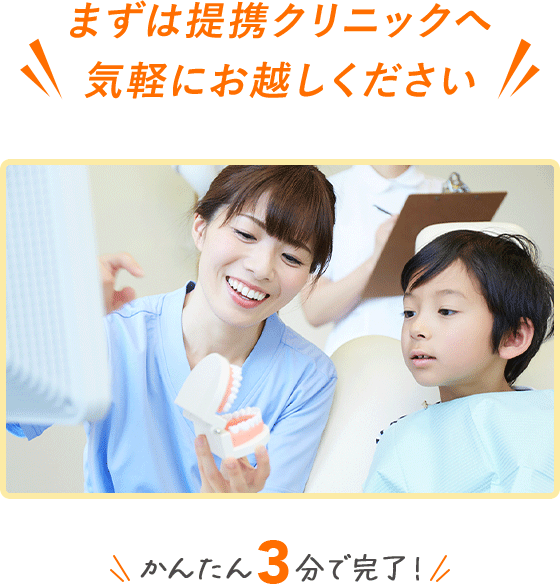 ただし、痛みがある場合や乳歯の抜歯をご希望の場合は、提携クリニックにご相談ください。