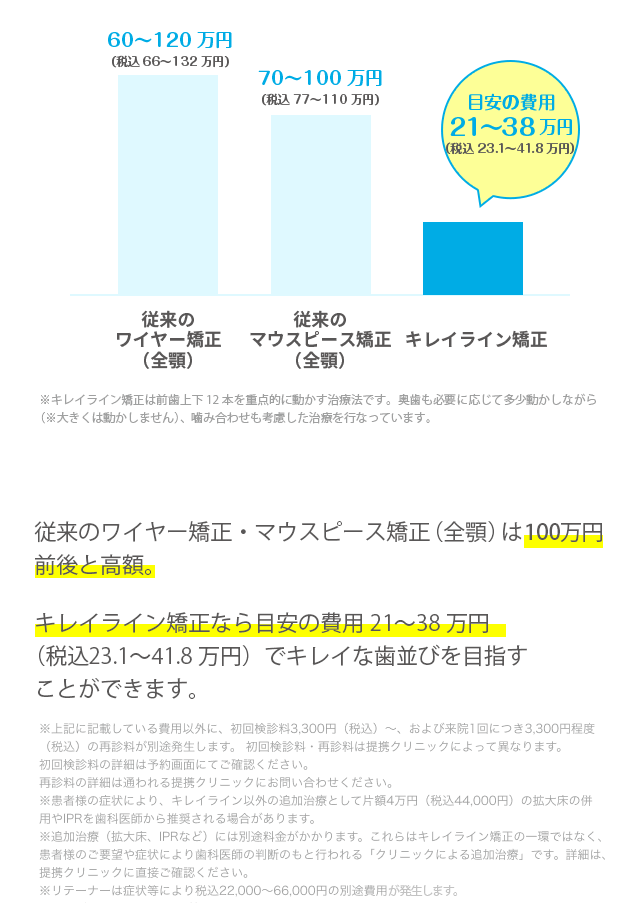 ※IPR、アタッチメントなど提携クリニックによる治療費用は各提携クリニックにより異なります。