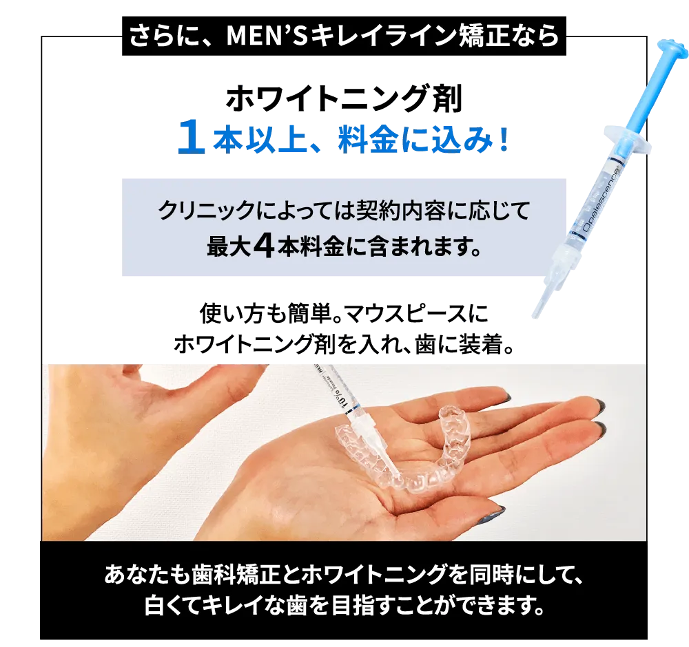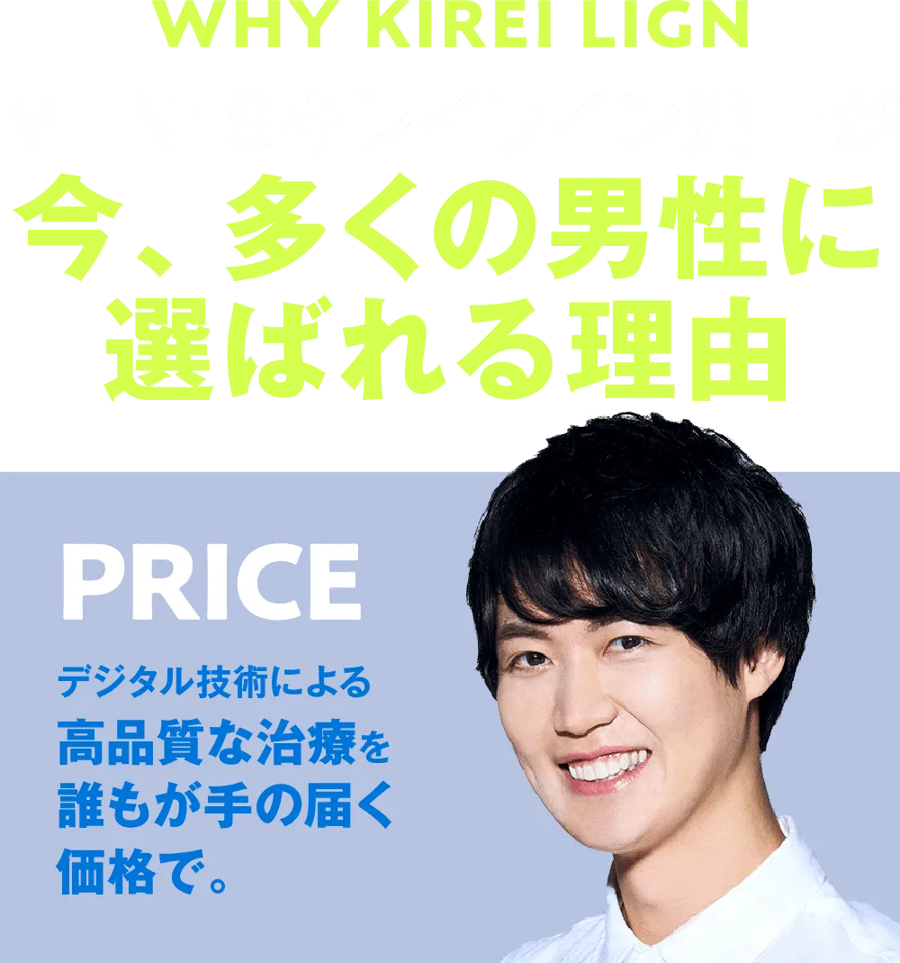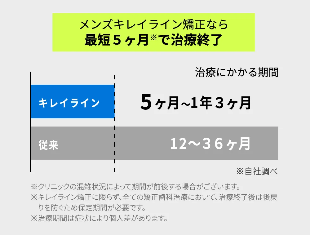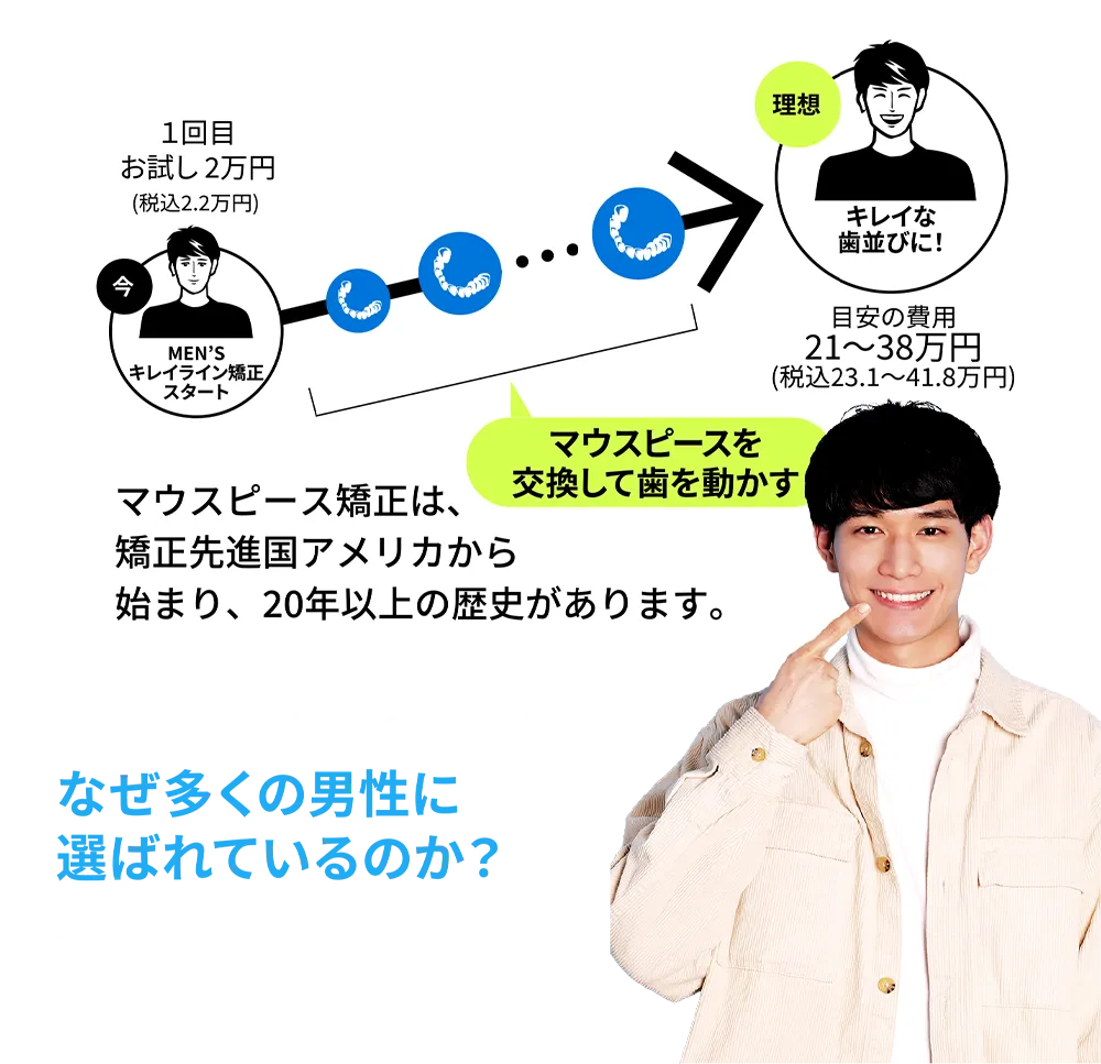 無理に節約したり、お金を貯めなくても、月1回美容院に行くような感覚で今すぐ歯科矯正を始められる。そのコストパフォーマンスの高さがMEN’Sキレイラインの一番の魅力です。
