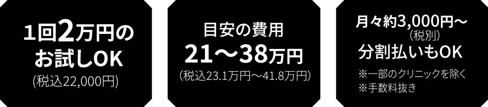 まずは1回2万円(税込22,000円)でお試しすることもできますので、ぜひお気軽にご相談ください。