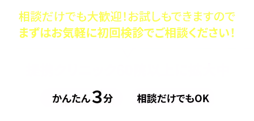 まずは、お話を聞くだけでよいので、気軽に初回検診へお越しください。あなたのご来院を心よりお待ちしております。
