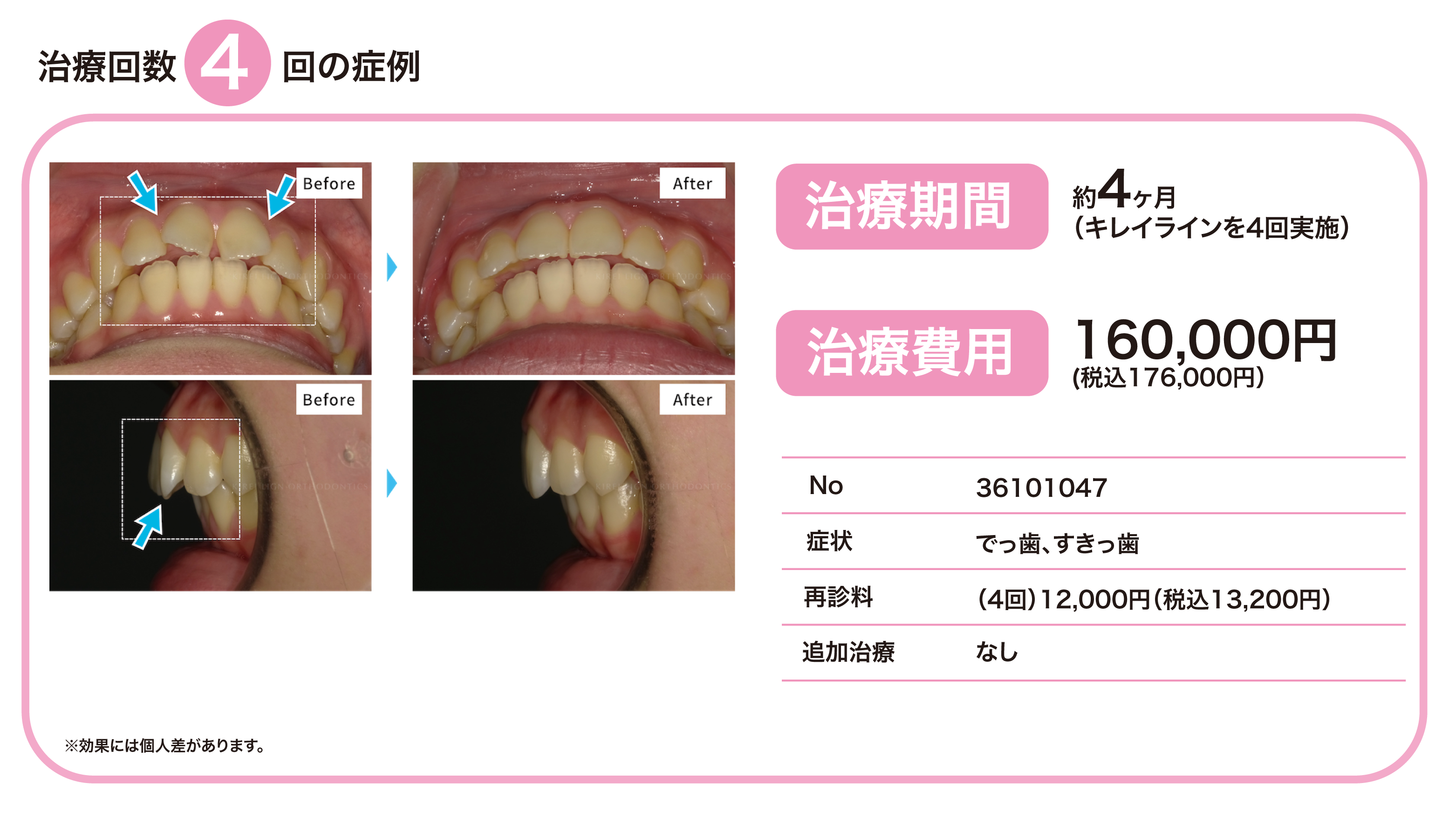 ・掲載している症例は、ホワイトニング併用の場合も含みます。ホワイトニングの追加費用は算出しておりませんのでご注意ください。