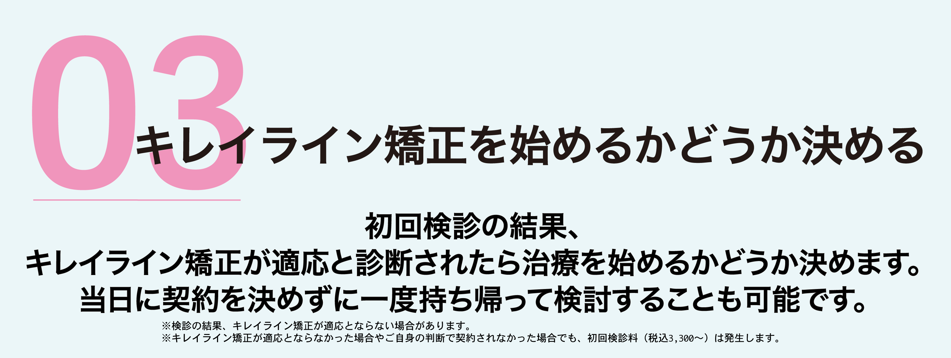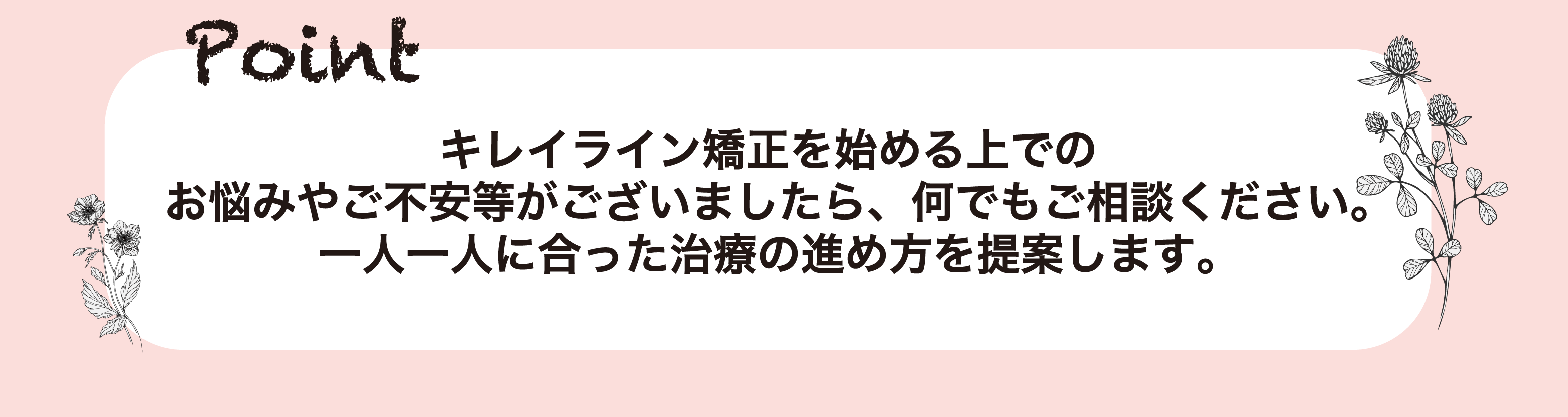 ※抜歯・拡大床・IPR(削る処置)はいずれもキレイライン矯正による治療の一環ではなく、提携クリニックによる治療です。詳細はクリニックへお問い合わせ下さい。